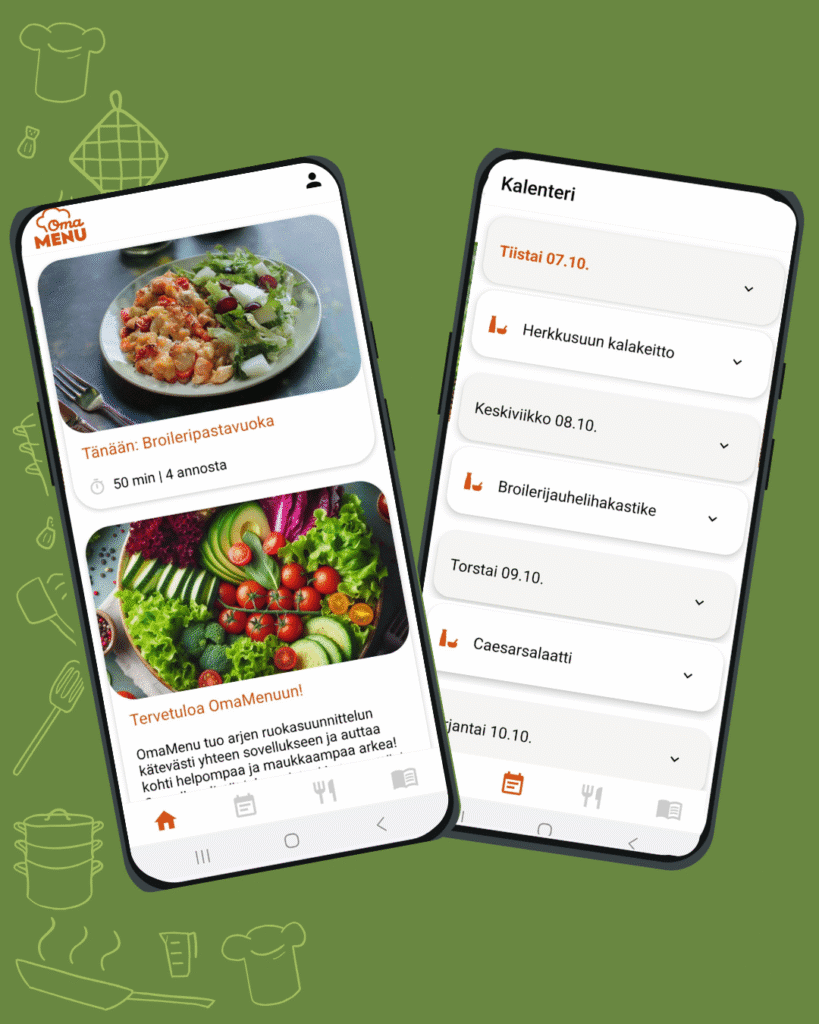 OmaMenu-sovellukselle suunnittelet vaivattomasti oman ruokalistan haluamallesi ajalle omista tai valmiista ruokaresepteistä tai ruokalistoista – juuri sinun perheesi tarpeisiin.