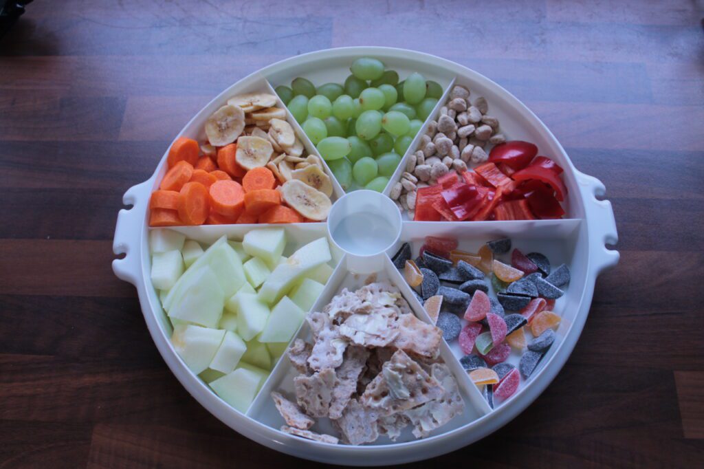 Erilaisista ruoka-aineista esim. hedelmistä, kasviksista, juustosta ja leivästä pilkotaan pieniä sormin syötäviä paloja eli makupaloja. Makupaloiksi käyvät myös suoraan sopivan kokoiset ruoka-aineet esimerkiksi marjat, viinirypäleet ja pyörykät. Osa makupaloista on hyvä olla vanhoja tuttuja ruoka-aineita, osa uusia ja osa voi olla myös jotakin “herkkua” kuten suklaata tai keksiä. Makupalat laitetaan lautaselle omiin lohkoihin.